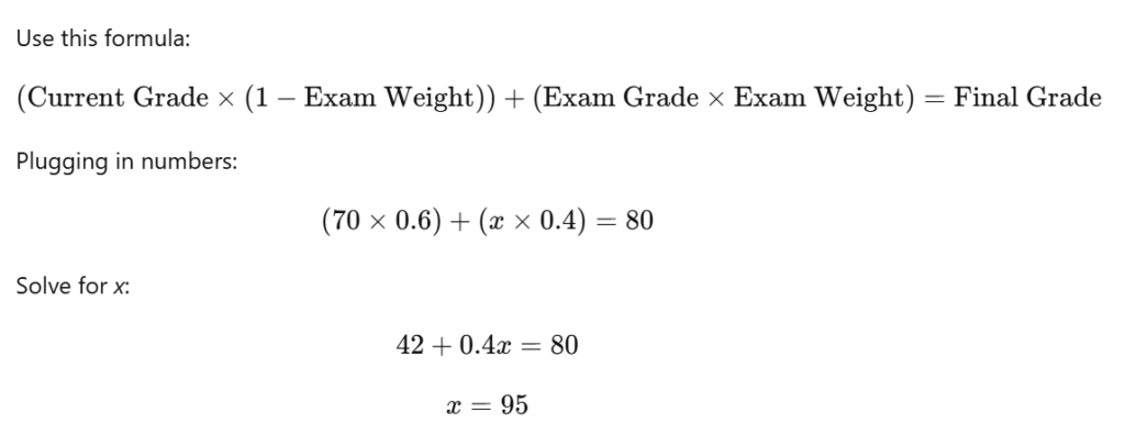 If your current average is 70%, here’s what you’d need to reach an 80% overall: